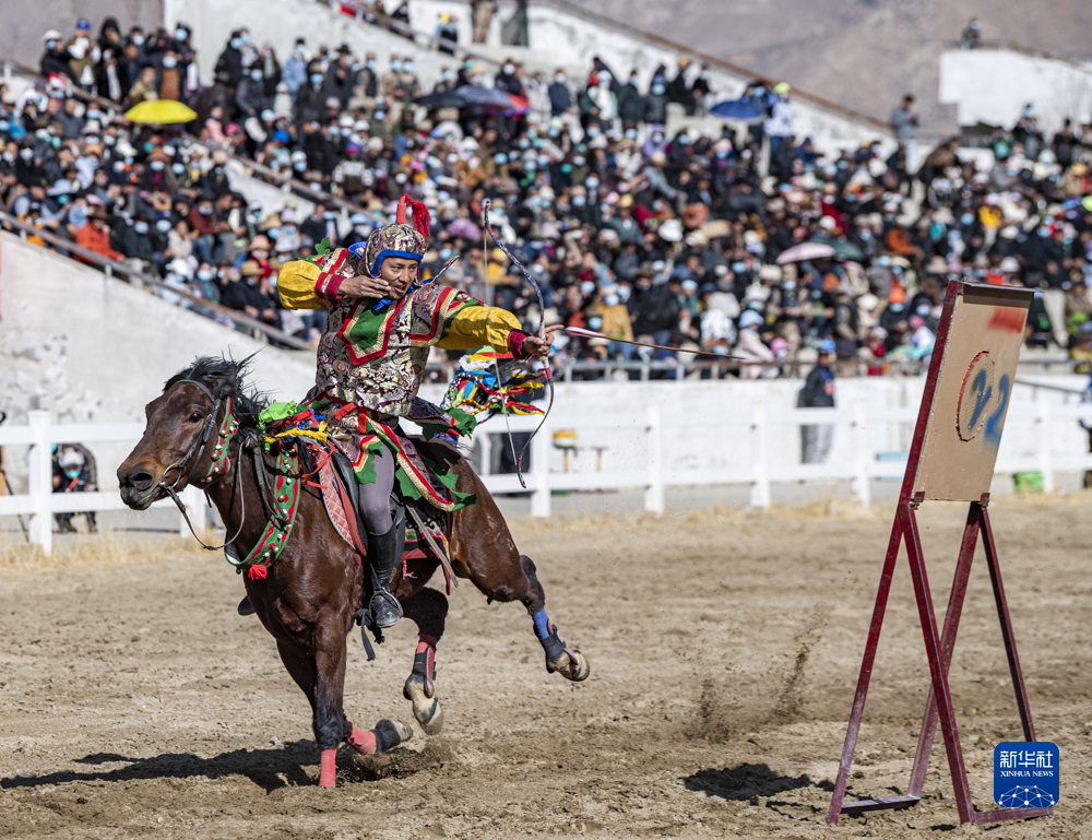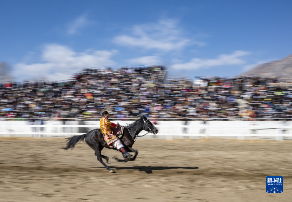 2月23日,在拉薩賽馬場(chǎng)舉辦馬術(shù)表演已成為當(dāng)?shù)貞c祝新年的傳統(tǒng),深受廣大群眾喜愛(ài)。騎手們英姿颯爽,為觀眾們帶來(lái)騎馬拾哈達(dá)、騎馬射箭等精彩表演。