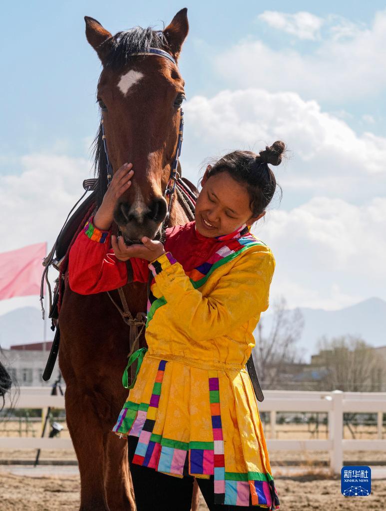 2月23日,騎手在表演前和賽馬互動(dòng)。新華社發(fā)(丁增尼達(dá) 攝)