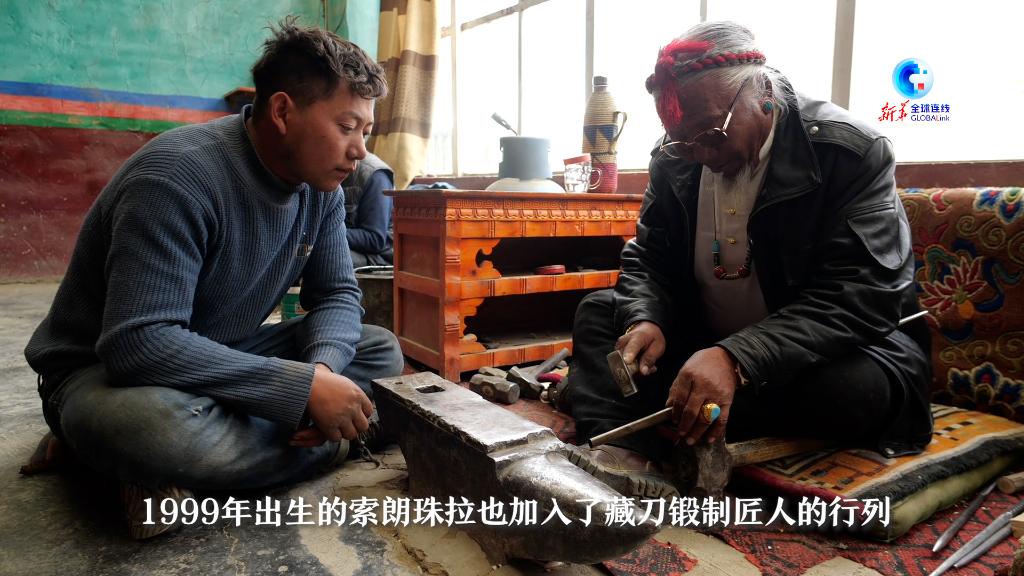 藏刀鍛制技藝傳承人次旦旺加的作坊里,兩個兒子尼瑪旺拉和次旦扎西協(xié)助次旦旺加認真完成著每一個鍛造環(huán)節(jié)。次旦旺加的孫子,1999年出生的索朗珠拉也加入了藏刀鍛制匠人的行列,成為第八代傳承人。