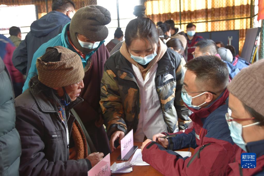 3月23日,援藏醫(yī)生向村民叮囑藥品的服用方法和禁忌等注意事項。新華社記者 黃耀漫 攝