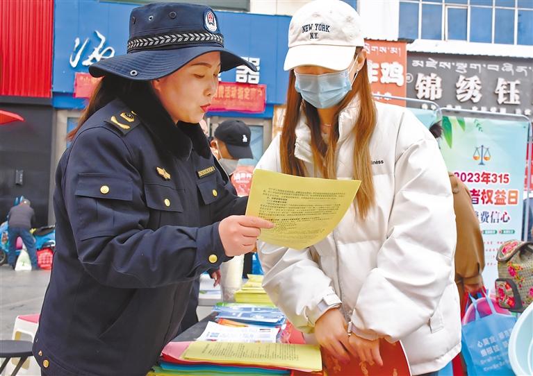 圖為今年“3·15”期間,山南市監(jiān)局工作人員向市民宣講消費(fèi)者權(quán)益保護(hù)知識。劉楓 攝