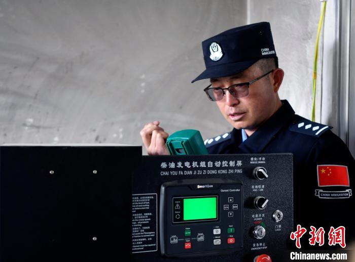 民警李加潘正在保養(yǎng)柴油發(fā)電機(jī)組。 李林 攝