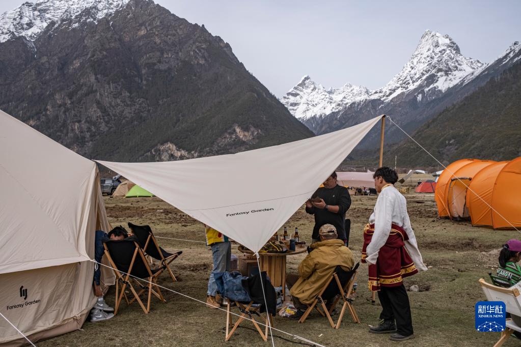 4月15日,游客在巴松錯(cuò)附近體驗(yàn)露營(yíng)生活。新華社記者 黃耀漫 攝