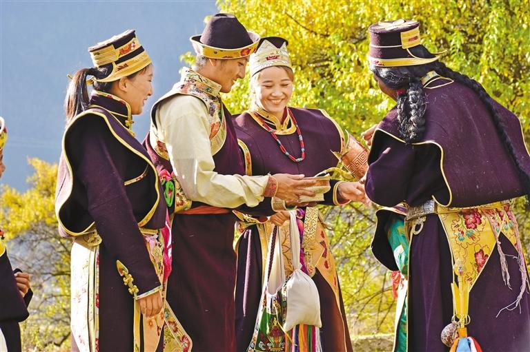 巴宜區(qū)布久鄉(xiāng)擁有濃厚的工布民俗文化氛圍,當(dāng)?shù)爻浞职l(fā)揮“旅游+民俗文化”的優(yōu)勢,吸引游客前來體驗。圖為布久鄉(xiāng)朵當(dāng)村身著傳統(tǒng)工布藏裝的村民。