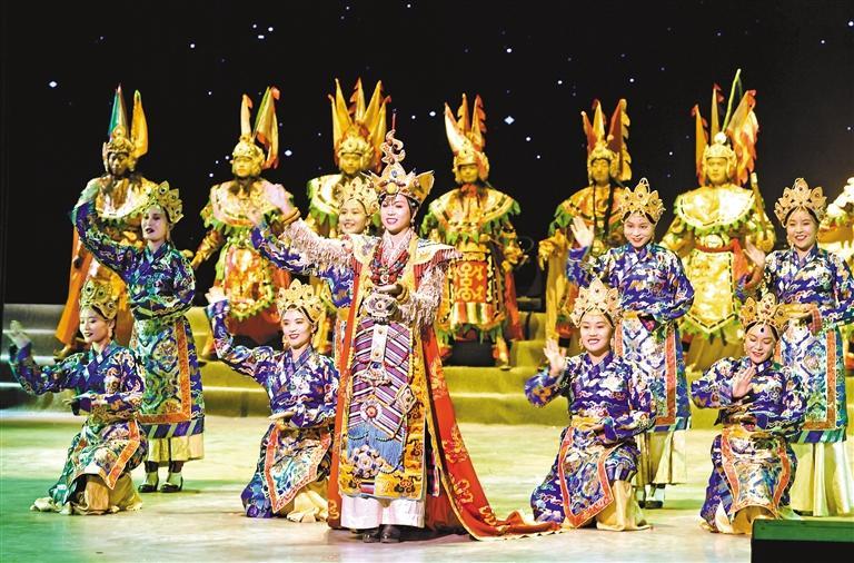 圖為歌舞劇《天邊格?;ā繁硌輬鼍?。旦增蘭澤 攝