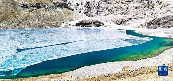 瓊穆崗嘎冰川上的一處冰湖 新華社記者 沈虹冰 攝