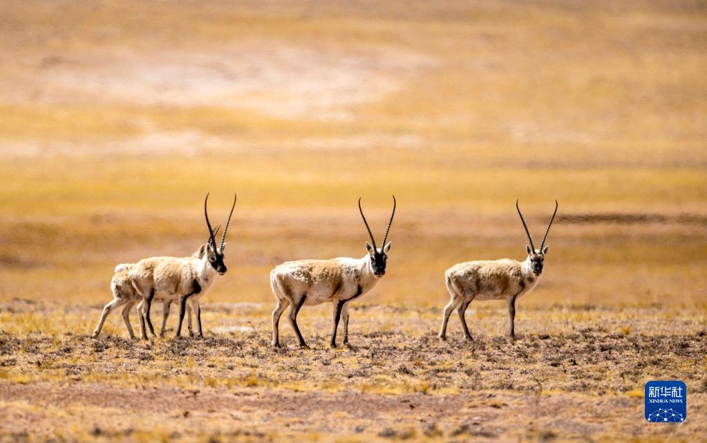 這是在羌塘國家級自然保護區(qū)那曲市雙湖縣區(qū)域內(nèi)拍攝到的藏原羚(4月16日攝) 。新華社記者 格桑邊覺 攝