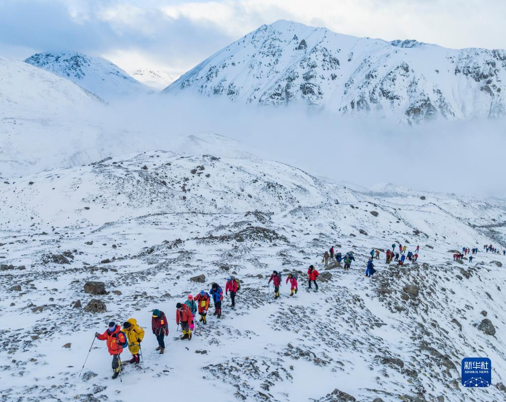 5月3日,登山愛好者正在向海拔6010米的洛堆峰峰頂進(jìn)發(fā)。新華社記者 黃耀漫 攝