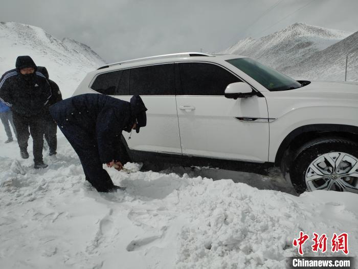 民警隨即打火發(fā)動(dòng)警車(chē),行至被困車(chē)輛前面,利用拖車(chē)?yán)K連接警車(chē)與被困車(chē)輛,其余救援人員雙手搭上車(chē)輛用力向前推,“一、二、三,加油!”“動(dòng)了,動(dòng)了,車(chē)子可以向前移動(dòng)了?!辩P除積雪、鋪撒砂石、推拉車(chē)輛……接下來(lái)救援人員用同樣的方法開(kāi)始拖出其余車(chē)輛,3個(gè)多小時(shí)后,5輛車(chē)、14名民眾全部脫離險(xiǎn)境。所有被困車(chē)輛和人員安全抵達(dá)楚魯松杰鄉(xiāng)。