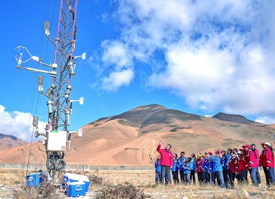 5月15日,珠峰站工作人員席振華給孩子們講解科學(xué)儀器的功能作用。當(dāng)日,西藏日喀則市定日縣扎西宗鄉(xiāng)完全小學(xué)的學(xué)生來到中國科學(xué)院珠穆朗瑪大氣與環(huán)境綜合觀測研究站(簡稱“珠峰站”),參加主題為“遇見科學(xué) 遇見青藏高原”的公眾科學(xué)日活動。孩子們參觀科學(xué)觀測儀器,零距離感受“第二次青藏科考”,在重點實驗室聽了一堂生動的科學(xué)課。新華社記者 孫非攝