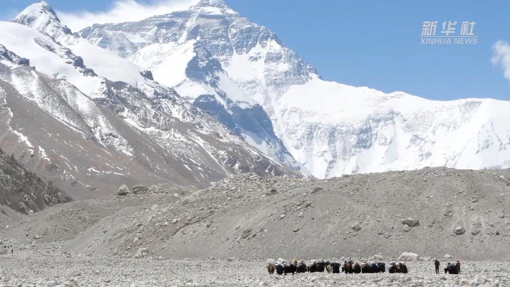 5月18日清晨,牦牛隊正在準備運送民間珠峰登山隊需要的物資。這些物資將分別運送到海拔5800米和6500米的營地。