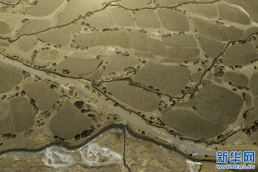 5月20日,在西藏定日縣扎西宗鄉(xiāng)境內(nèi)拍攝的農(nóng)田(無(wú)人機(jī)照片)。 新華網(wǎng) 旦增努布 攝