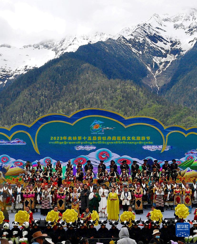5月28日拍攝的米林市第十五屆黃牡丹藏醫(yī)藥文化旅游節(jié)開幕式現(xiàn)場。新華社記者 劉文博 攝