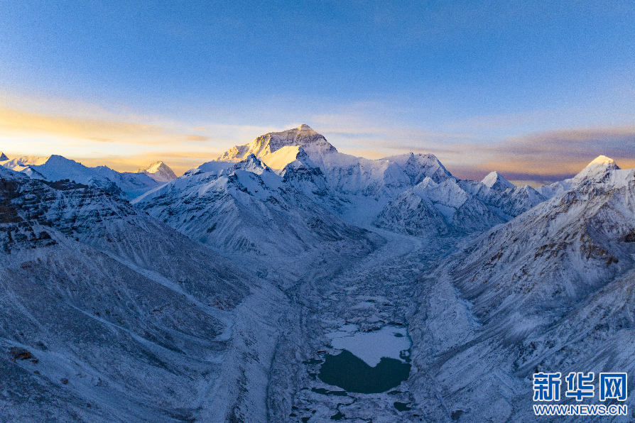 珠穆朗瑪峰與冰湖。新華網(wǎng) 旦增努布 攝