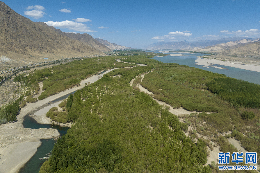 夏日時節(jié),雅魯藏布江山南段的雅魯藏布江防護林綠樹成蔭,風景秀麗。