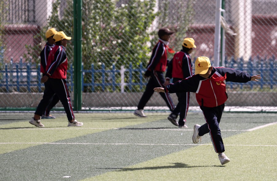 6月5日,扎西宗鄉(xiāng)完全小學(xué)的學(xué)生在上體育課。