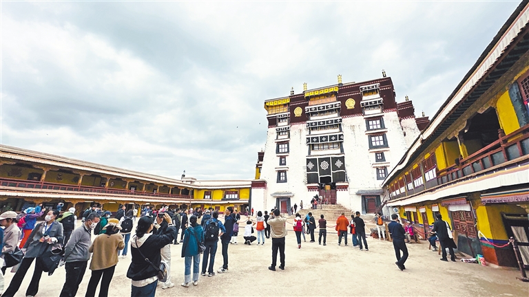 活動邀請了文化和旅游部領(lǐng)導(dǎo)、援藏省區(qū)市嘉賓、旅游企業(yè)代表以及媒體記者團(tuán)200余人,前往布達(dá)拉宮、大昭寺、西藏博物館、羅布林卡等景點“打卡”。在布達(dá)拉宮東大殿,大家觀賞記載有西藏佛教發(fā)展歷史、五世達(dá)賴生平、文成公主進(jìn)藏過程的壁畫;來到羅布林卡,蔥綠的樹木、鮮艷的花朵、宏偉的藏式建筑讓人流連忘返。