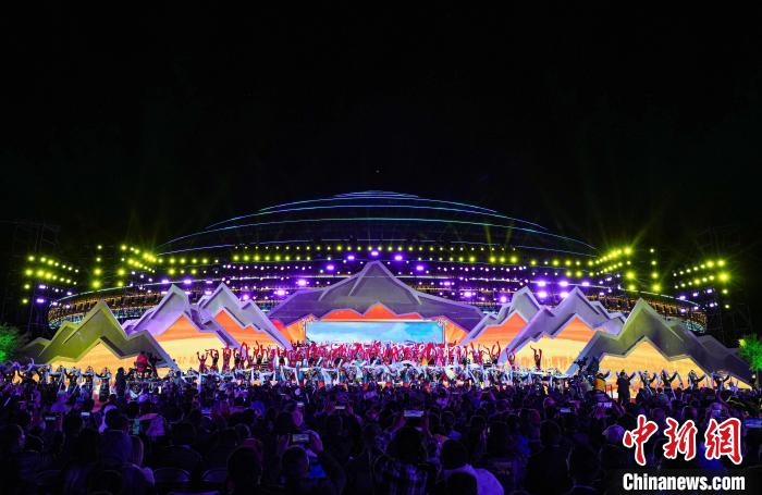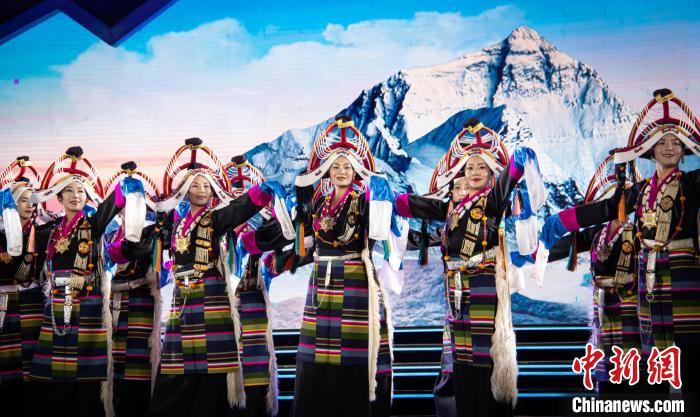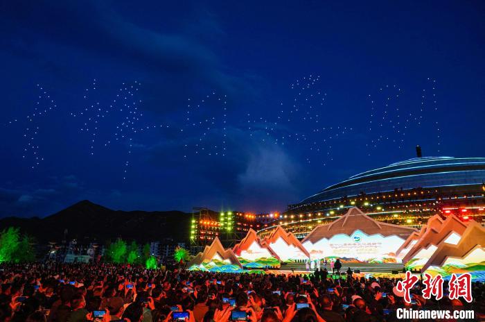 開幕式上,由300架無人機組成的暖場表演在日喀則珠峰文化旅游創(chuàng)意產(chǎn)業(yè)園區(qū)上空精彩呈現(xiàn),組成“珠峰故里、吉祥日喀則,歡迎您!”等陣型。匠心獨運的創(chuàng)意設(shè)計,流光溢彩的聲光電效果,以恢弘氣勢和華麗造型,展示日喀則的開放包容。文藝表演由序《珠峰頌歌》、上篇《戀上青稞》、下篇《極境暢想》和尾聲《吉祥日喀則》組成。聲,是情的流露;舞,是意的表達。文藝演出將民眾的生活與藝術(shù)相結(jié)合,融合傳統(tǒng)文化與現(xiàn)代歌舞等藝術(shù)形式,既富有傳統(tǒng)特色又極具時代魅力,將日喀則各族人民的喜悅和游情盡情抒發(fā),充分表達了日喀則各族人民對美好生活的熱愛和對祖國的祝福歌頌。