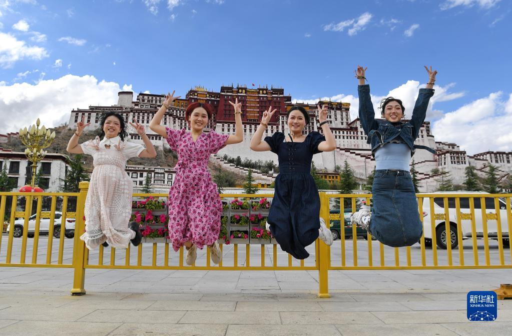 游客在布達(dá)拉宮廣場上合影留念(6月16日攝)。新華社記者 張汝鋒 攝
