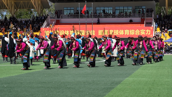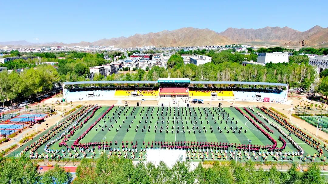 6月25日上午,主題為“相約珠峰·千人弦音”日喀則大型非遺歌舞展演在西藏自治區(qū)日喀則市上海體育場震撼上演?,F(xiàn)場共1000名參與者同時(shí)表演日喀則非遺民俗舞蹈。