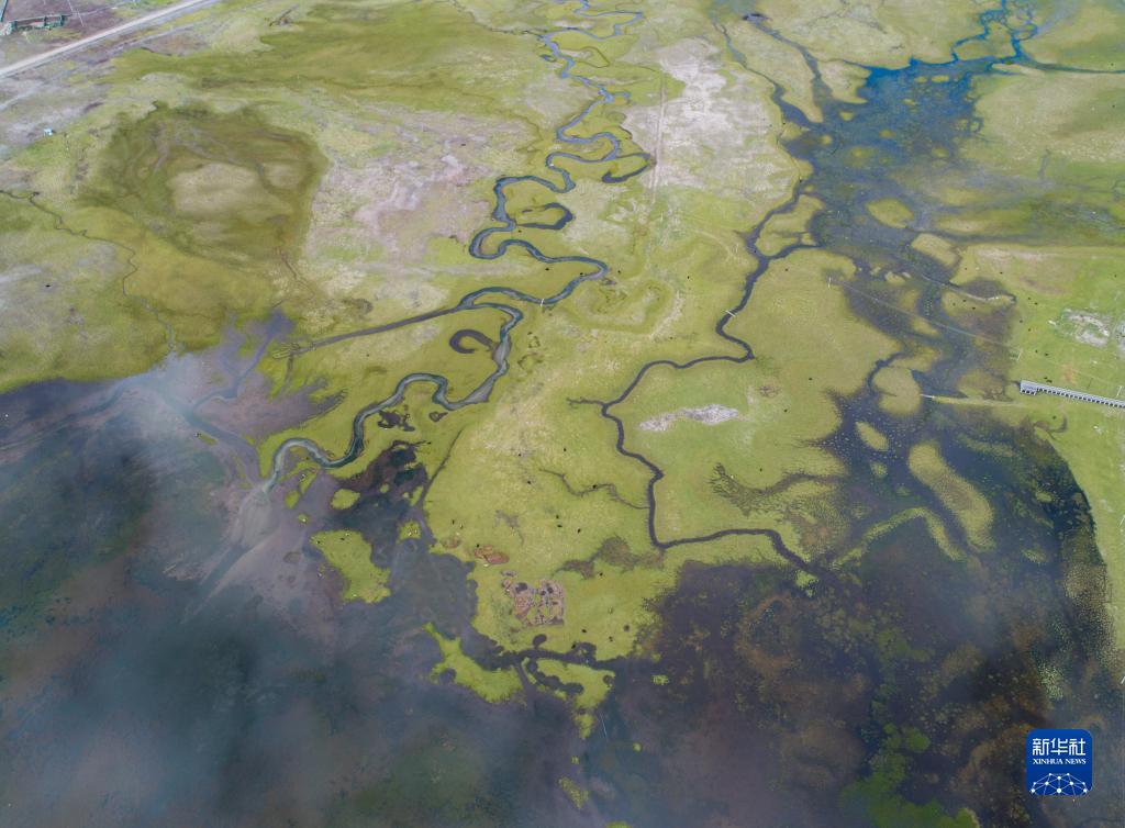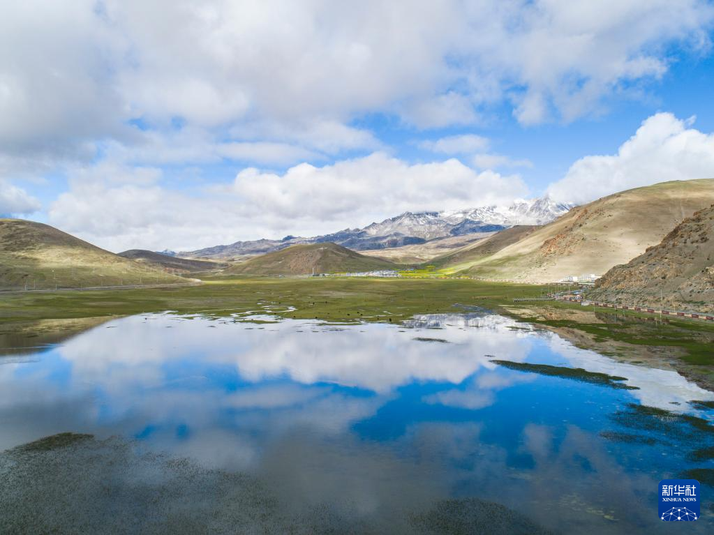 這是錯(cuò)那市區(qū)附近的濕地(6月28日攝,無(wú)人機(jī)照片)。新華社記者 孫非 攝