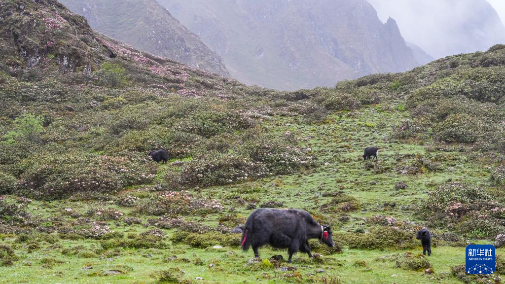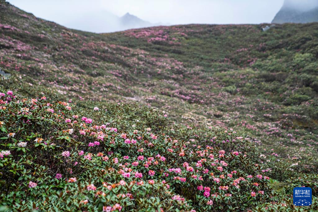 這是在波拉山上拍攝的高山杜鵑(6月27日攝)。新華社記者 孫非 攝