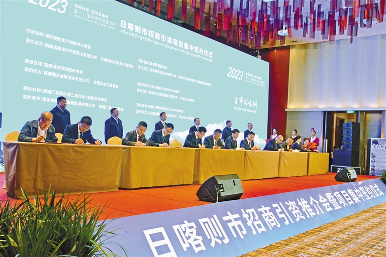 “此次簽約項目都是億元以上的優(yōu)質項目,投資強度大、科技含量高、發(fā)展?jié)摿ψ?,涵蓋文化旅游業(yè)、清潔能源產(chǎn)業(yè)、高原特色農(nóng)牧業(yè)、綠色工業(yè)、藏醫(yī)藥產(chǎn)業(yè)、現(xiàn)代服務業(yè)、邊貿物流業(yè)、高新數(shù)字產(chǎn)業(yè)八大重點產(chǎn)業(yè)?!比湛t市商務局局長馮學成介紹說,“項目落地后將為我市產(chǎn)業(yè)建鏈、補鏈、強鏈提供更加堅實有力支撐,也必將為日喀則高質量發(fā)展注入新動力、激發(fā)新活力。”