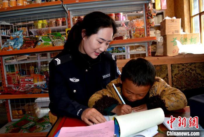 圖為索朗曲珍為轄區(qū)兒童輔導作業(yè)。勒布邊境派出所供圖