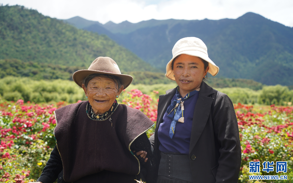 家在朵當(dāng)(卡達)村的索朗卓瑪帶著自己81歲的母親前來賞花。她說,“村子里能開出這么漂亮的花,感到特別高興。帶媽媽來賞花,再拍拍照,很開心?!蹦概说男δ樤诨ǘ涞挠骋r下更加燦爛。