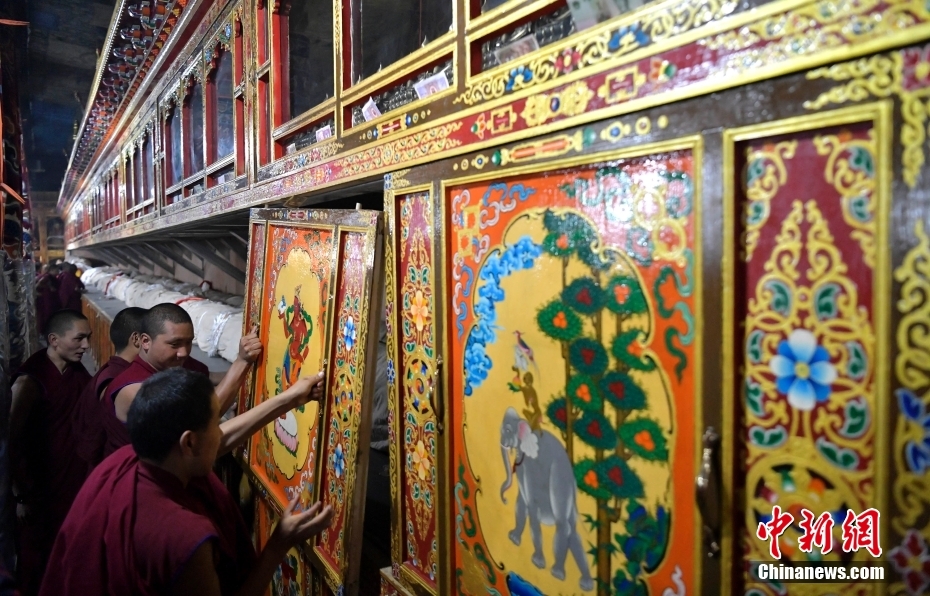 8月16日,拉薩哲蚌寺舉行展佛活動。
