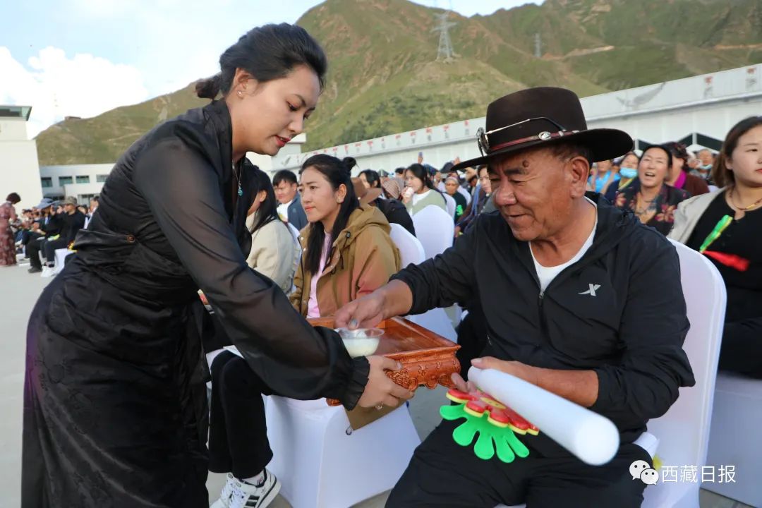 與此同時(shí),2000名受邀師生代表、單位干部職工代表以及社區(qū)(村居)群眾在分會(huì)場(chǎng)觀看開(kāi)幕式演出。分會(huì)場(chǎng)的開(kāi)幕式演出在藏裝秀表演中拉開(kāi)序幕,除了有精彩多樣的演出節(jié)目外,分會(huì)場(chǎng)還有其樂(lè)融融的酸奶宴以及幸福感滿滿的集體鍋莊環(huán)節(jié)。