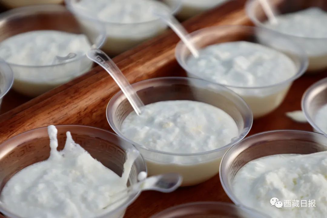 2023年拉薩雪頓節(jié)開(kāi)幕式分會(huì)場(chǎng)上,為拉薩市民準(zhǔn)備的酸奶。記者 格桑倫珠 攝