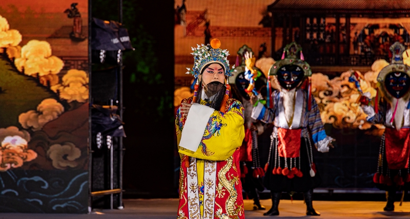 在2023拉薩雪頓節(jié)開幕式文藝演出上,京劇藏戲《文成公主》再次上演(8月16日攝)。丁增尼達 攝