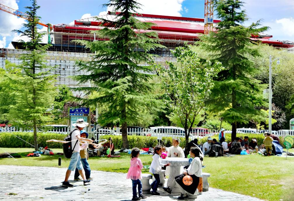 雪頓節(jié)期間,西藏各個(gè)景點(diǎn)游人如織、熱鬧非常。拉薩市民準(zhǔn)備好毯子和小吃,到羅布林卡“過林卡”。園林內(nèi),既有小橋流水,也有恢弘建筑,雪頓節(jié)期間更有持續(xù)不斷的藏戲表演。