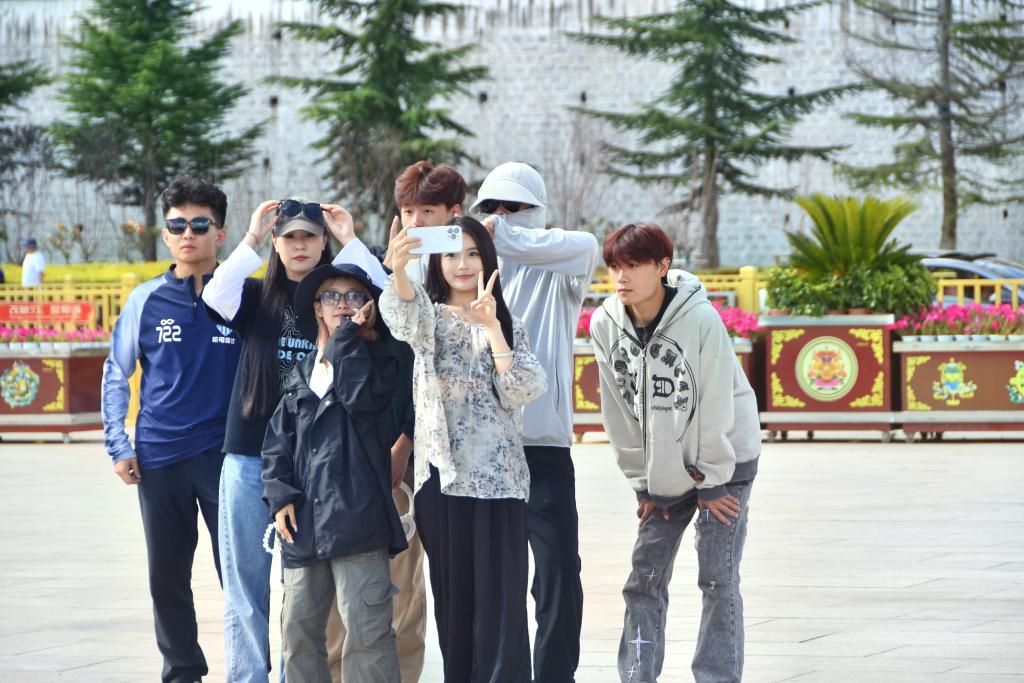 8月17日,布達(dá)拉宮廣場,游客們拍照留念。新華社記者 劉文博 攝