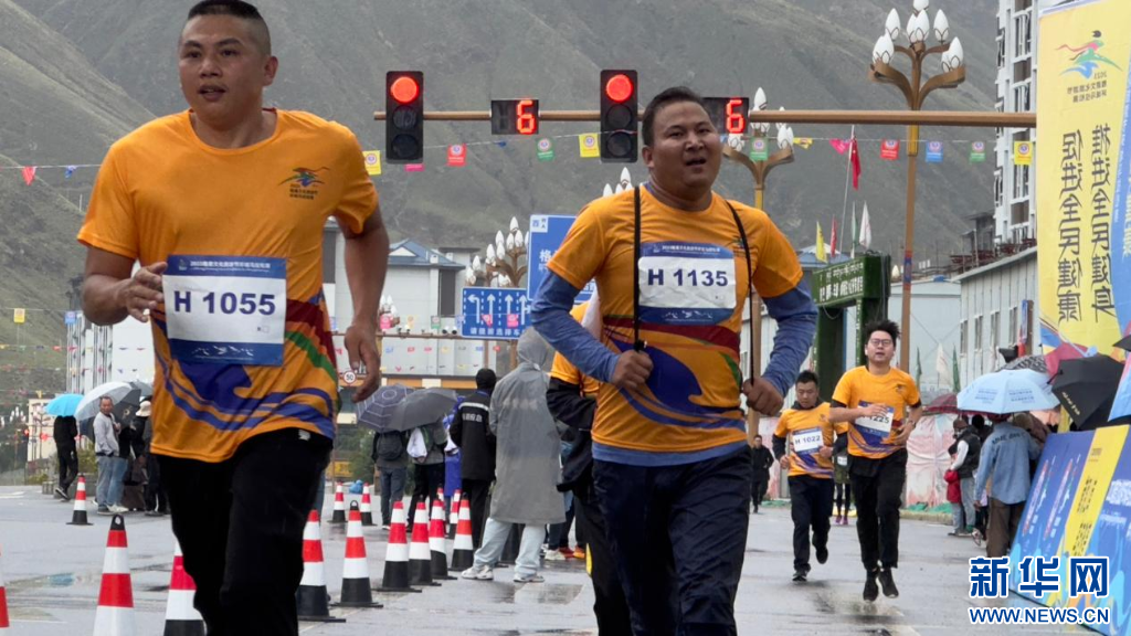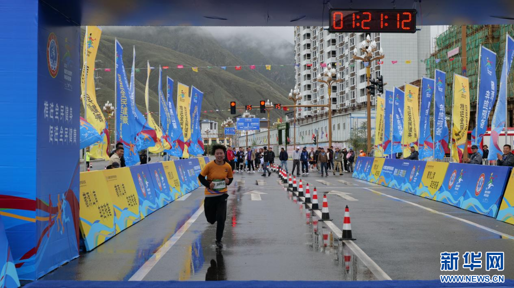 圖為2023雅礱文化旅游節(jié)環(huán)城馬拉松賽11公里競(jìng)速組最后一名選手到達(dá)終點(diǎn)(8月26日攝)。新華網(wǎng) 柑丹鴦琦 攝