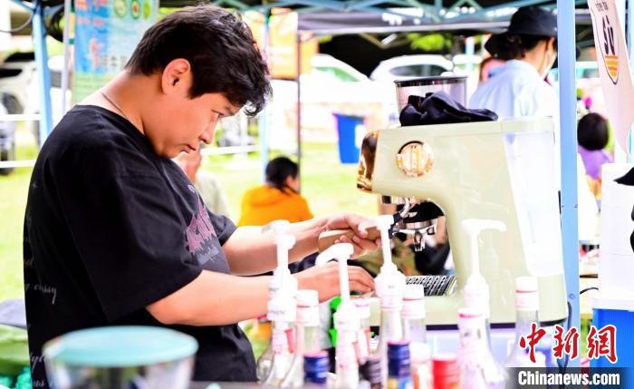 圖為咖啡走進鄉(xiāng)間,咖啡師調(diào)制咖啡。西藏他喜咨詢供圖