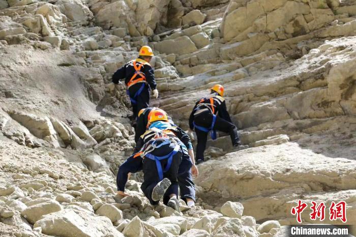 近日,在西藏山南雅魯藏布江畔的拉林鐵路安拉隧道口山崖上,中國鐵路青藏集團有限公司拉薩基礎(chǔ)設(shè)施段加查橋隧工區(qū)的職工們對山體開展巡視,他們一邊攀爬,一邊小心用手錘敲擊巖石,對有空虛、容易滑落的石塊用自噴漆進行標記。遠遠看去,一群人猶如壁虎穿梭于懸崖峭壁之上。
