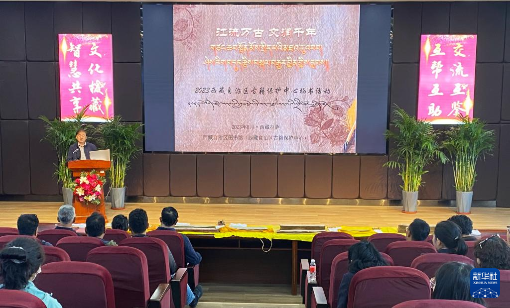 “江流萬古 文潤千年”——2023年西藏自治區(qū)古籍保護中心曬書活動現(xiàn)場。新華社記者 春拉 攝