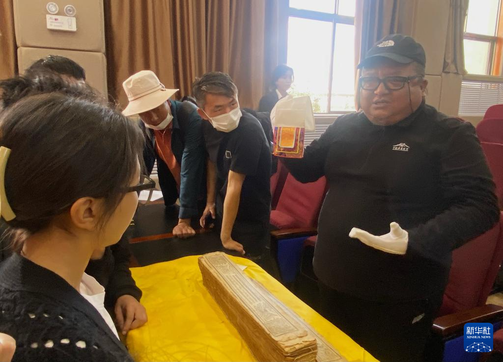 西藏自治區(qū)古籍保護中心專家與現(xiàn)場與會專家互動分享古籍文獻知識。新華社記者 春拉 攝