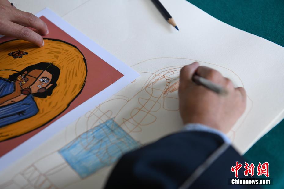 圖為那曲市特殊教育學(xué)校學(xué)生正在畫畫。貢嘎來(lái)松 攝
