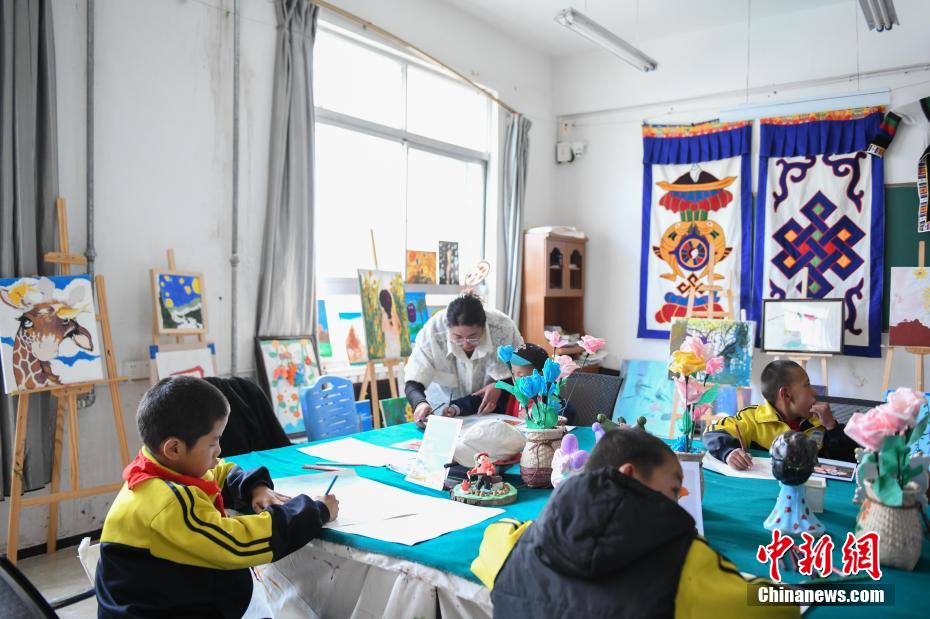 圖為那曲市特殊教育學(xué)校老師教學(xué)生畫畫。貢嘎來(lái)松 攝