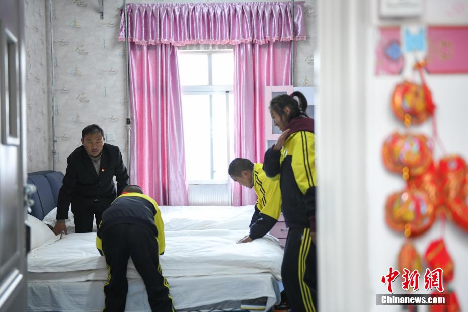圖為那曲市特殊教育學(xué)校學(xué)生學(xué)習(xí)酒店服務(wù)。貢嘎來(lái)松 攝