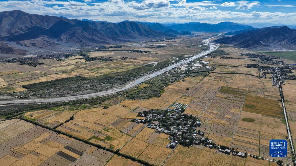 西藏日喀則市年楚河流域糧食長勢喜人(9月6日攝 無人機(jī)照片)。新華社記者 晉美多吉 攝