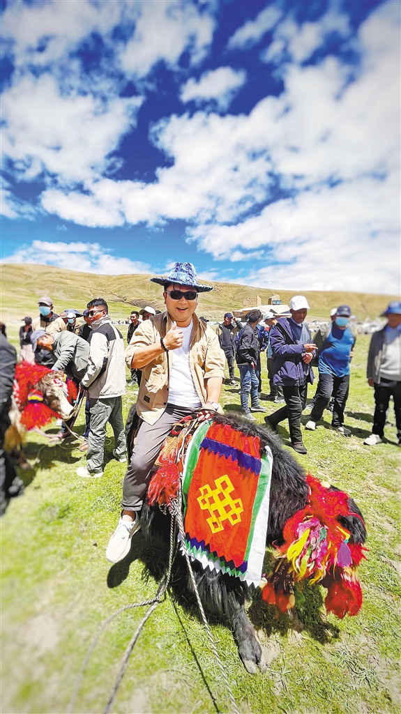 圖為來(lái)自湖南的游客李先生在牧人節(jié)賽牦牛項(xiàng)目中,體驗(yàn)騎牦牛的刺激與歡樂(lè)。見(jiàn)習(xí)記者 武沛濤 攝