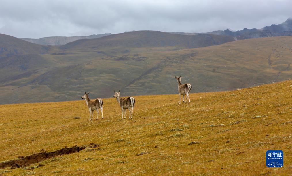 9月24日,幾只西藏馬鹿出現在位于西藏自治區(qū)山南市桑日縣的貢德林草原上。新華社記者 邵澤東 攝
