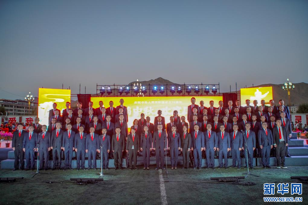 晚會中,安徽省第八批援藏工作隊全體成員合唱歌曲《我和我的祖國》。