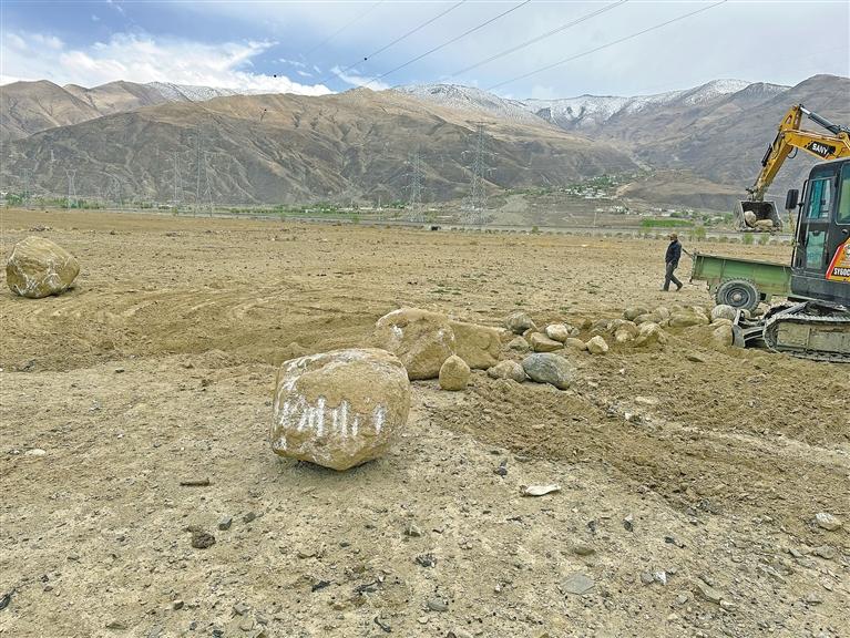 洛珠達(dá)瓦打開手機(jī)中的相冊,他指著挖石頭的視頻說:“雅魯藏布江沿岸土地中的石頭太多了,有些石頭重達(dá)幾噸,根本無法種植任何農(nóng)作物。為了撿石頭、挖石頭,我們每天從村里雇10多個(gè)人來干活?!?/p>