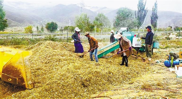 走在雅魯藏布江沿岸,成片的玉米地呈現(xiàn)眼前,讓人意想不到的是,半年前這里還是一片荒地?!拔覀兘衲攴N植玉米850多畝,其中,600多畝的玉米長勢良好,預(yù)計(jì)每畝可收玉米飼草2噸以上?!甭逯檫_(dá)瓦說。目前,玉米秸稈已陸續(xù)開始收割。