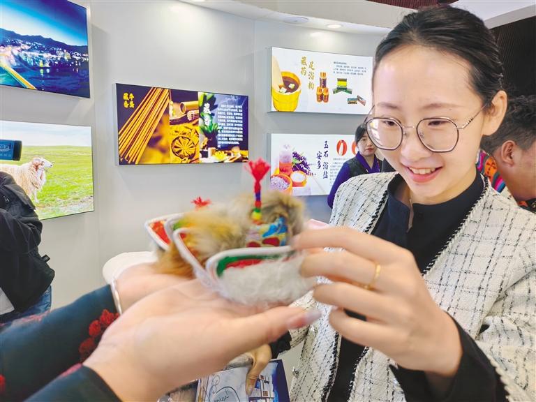“這次畜產(chǎn)品展銷活動(dòng)上,我們主要銷售天線帽工藝品、玉石、羊毛圍巾、羊毛毯等,產(chǎn)品價(jià)格比較實(shí)惠,前來咨詢購買的人也很多。展銷不到兩個(gè)小時(shí),就賣了1000多元。”安多縣措那湖文化傳播有限責(zé)任公司負(fù)責(zé)人貢布多吉的臉上充滿了喜悅。